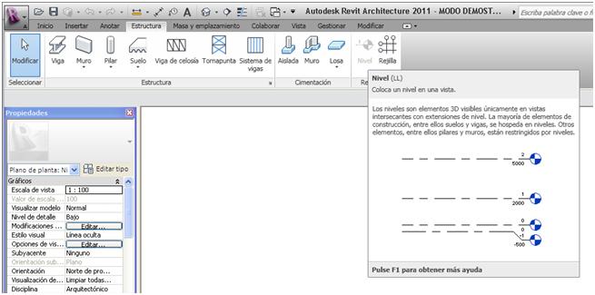 Para poder crear un nivel se ha de estar en vista de alzado o sección. Se realizan por medio de Inicio- Referencia- Nivel.
