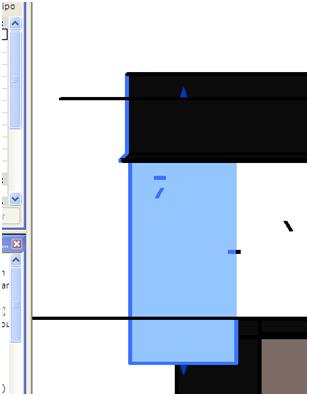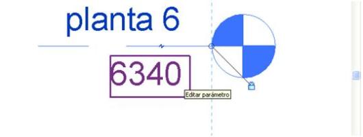 Con los pinzamientos de arrastre (puntos azules), se coloca el cursor del ratón sobre el pinzamiento, y se puede mover la línea de nivel cambiando la longitud de la misma. Se ha de tener en cuenta que arrastrar el pinzamiento supone arrastrar otros niveles y rejillas alineados.