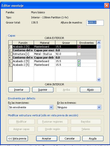 Imagen: En propiedades de tipo – editar – aparecen las capas de muro y materiales