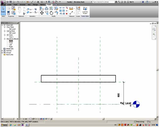Hay que crear en alzado un nuevo plano de referencia en el nivel 0, y otro plano de referencia que corresponde a la cara inferior del tablero y su altura respecto el nivel 0, el cual se ha de acotar, y se ha de acotar la distancia entre estos dos planos de referencia (para seleccionar el plano de referencia de la cota 0, hay que dar a tabulador y seleccionar). Se modifica la cota de altura al valor que se desee en caso de que el plano de referencia superior se coloque a cualquier altura.