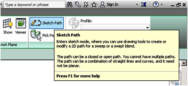 Una vez creado, como hemos indicado, el camino del Barrido en alzado, se trata ahora de realizar el perfil del Barrido, y para ello nos colocamos en planta.