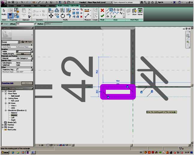 Hay que ponerse en el alzado para definir el plano de trabajo, y en el cuadro aparecen todos los planos de referencia, hay que trabajar sobre el plano interior.