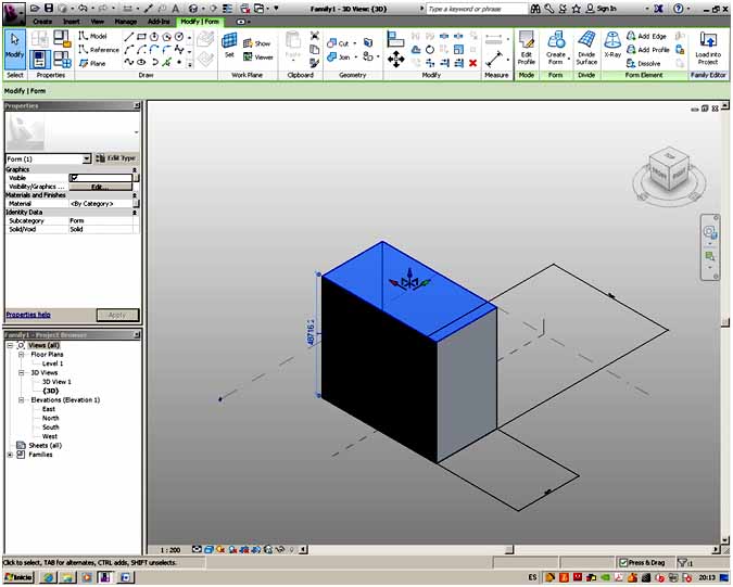 Por medio de un parámetro como es una cota que puedo decidir que tamaño tiene la Masa. Para crear un parámetro de cota, primero hay que generar la cota. Hay que medir las caras de la Masa, no las aristas, ya que si no existirán problemas.