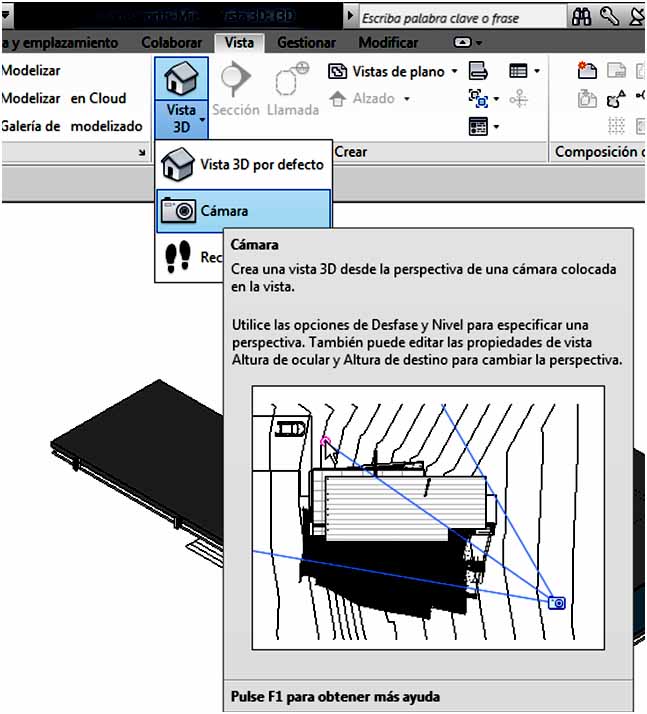 Para acceder a la cámara, hay que ir a Vista- Vista 3D- Cámara.
