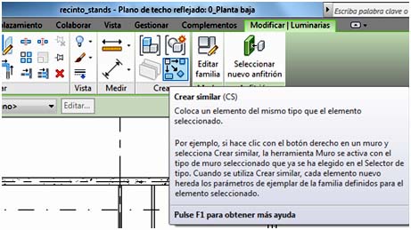 También se puede posicionar la luminaria en la planta, clicando sobre la misma que hay en el cuadro de navegación, y con botón derecho se indica Crear ejemplar.