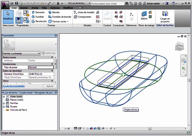 Si clicamos dos veces en la luminaria podemos acceder a la Familia de la misma.