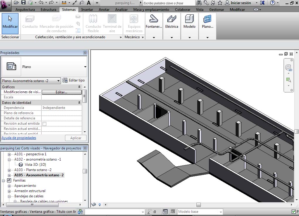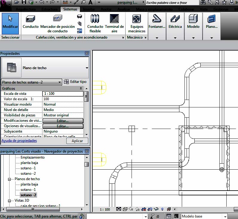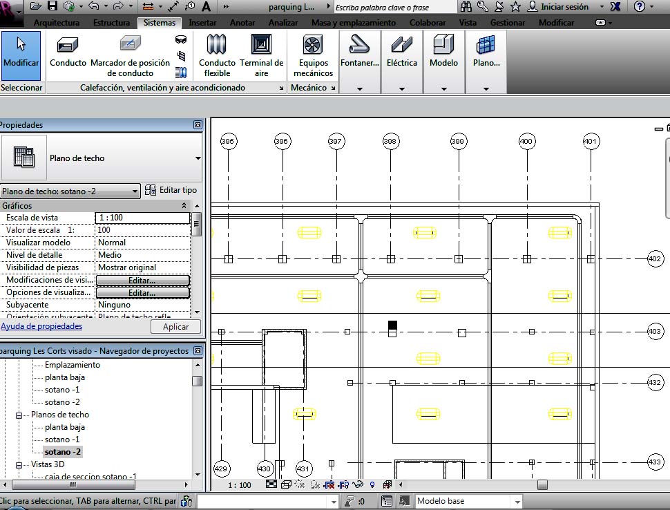 Para dibujar en planta la bandeja, hay que situarse en la Vista en planta que tenga un Rango de vista que incluya el nivel al que se encuentra dicha bandeja, ya que en caso contrario la bandeja no se verá en planta.