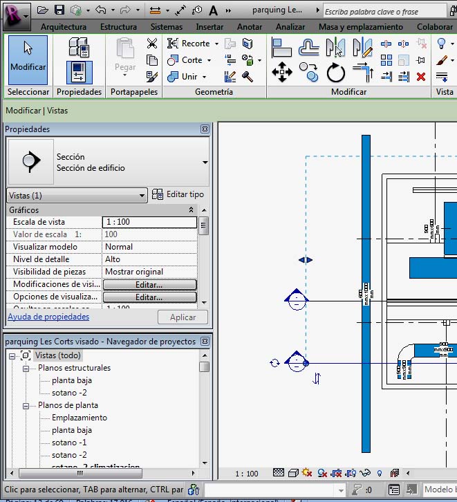 En la siguiente imagen se puede ver una situación de Conectores fuera del plano de vista de alzado: