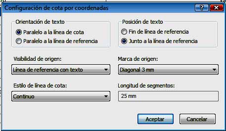 Luego hay que ir a Gráficos – Configuración de cota por coordenadas – Editar, y definir los parámetros que aparecen en el nuevo cuadro de diálogo: