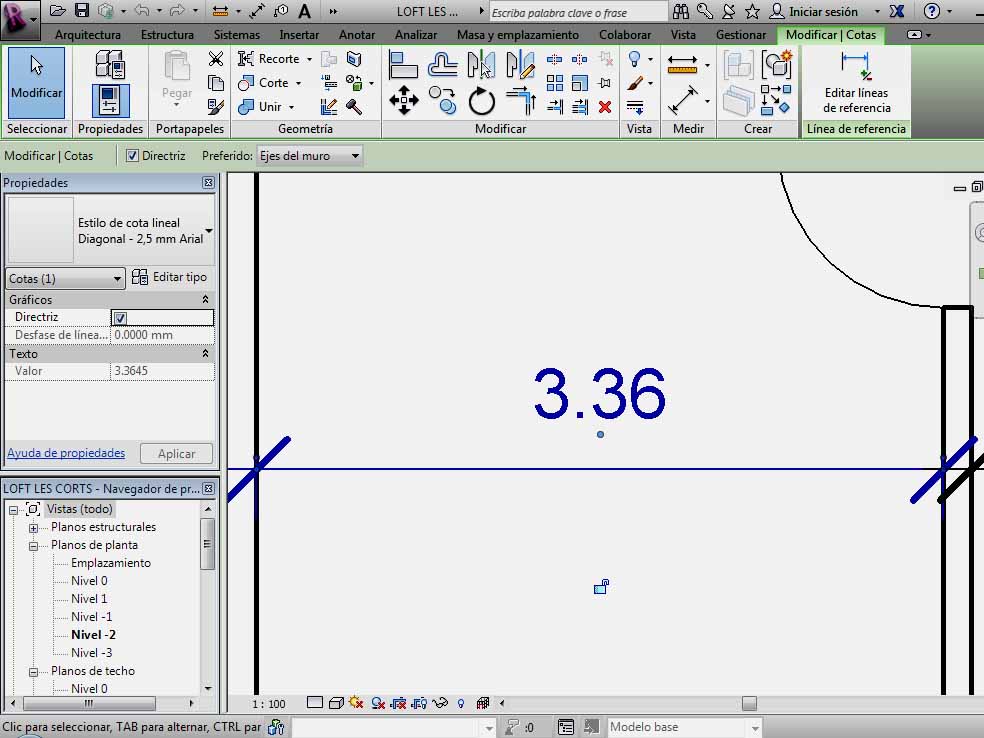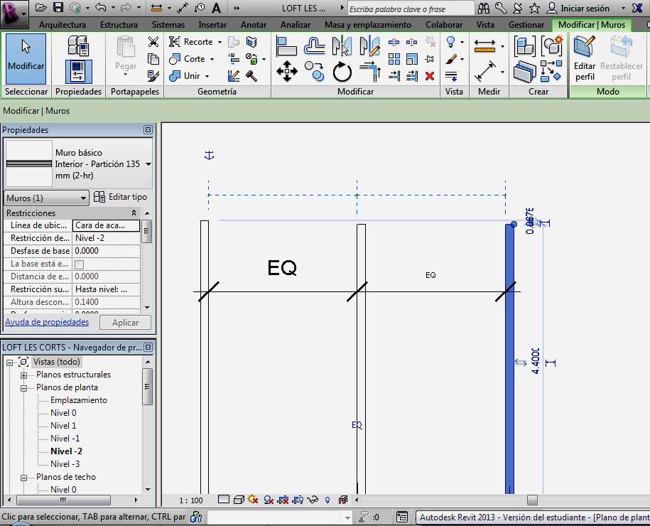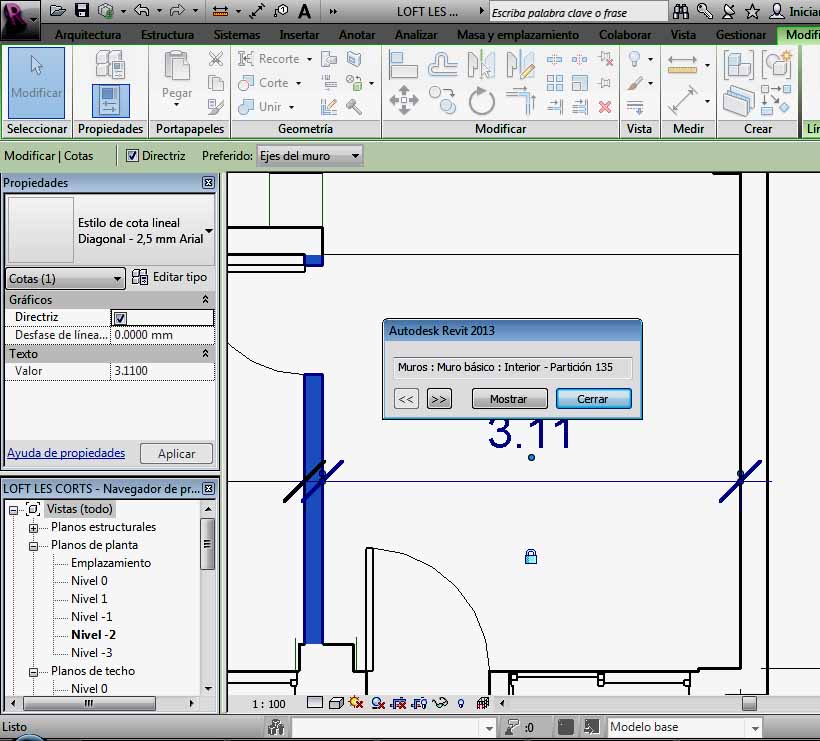 Si ahora se mueve uno de los muros laterales, el muro central se mantiene en la misma posición, fijo. Esta opción es muy interesante cuando se están diseñando familias, o bien para cotas, de mallas.
