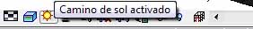 Para activar el Camino del sol en una vista, hay que utilizar el siguiente símbolo existente en la barra de herramientas inferior de dicha vista. Cuando se hace clic sobre el sol, se puede elegir entre la opción Camino de sol desactivado o Camino de sol activado.