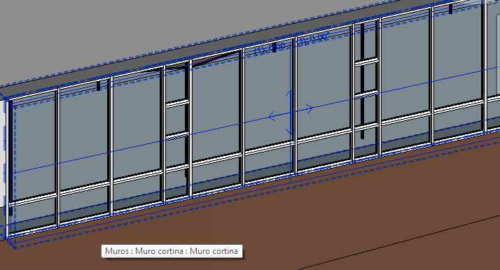 Se puede realizar modificaciones en un Muro cortina, de forma que existan diferentes planos de muro, con diferentes diseños de Rejilla. Para ello, hay que acceder a la Interfaz de diseño de rejilla. Cada plano de Muro cortina tiene esta Interfaz de rejilla. Se ha de seleccionar el Muro cortina, y clicar en el siguiente símbolo que aparece: