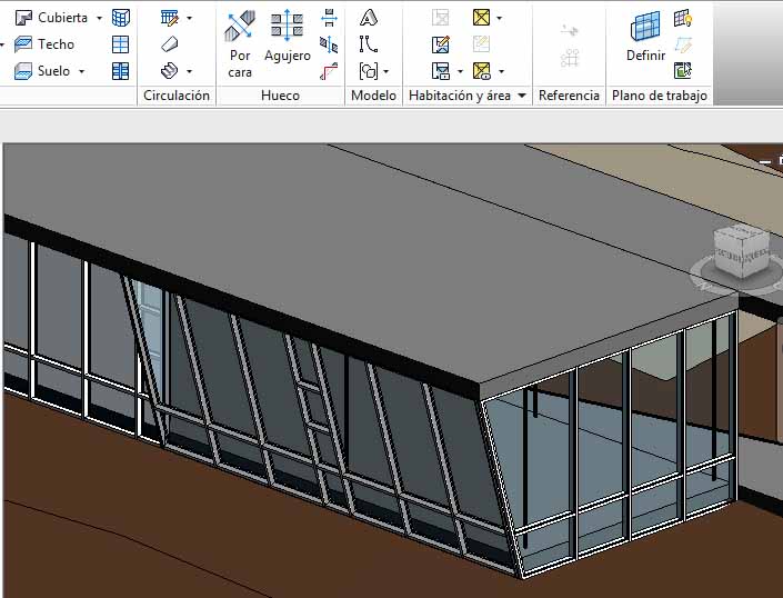 Existe la posibilidad de colocar en los extremos de muro cortina, unos Montantes diferentes a los rectangulares, para realizar soluciones de encuentro en los casos de Muro cortina inclinado, en el encuentro de dos Muro cortina, o bien, en el caso de Muros cortina en arco, para sus Montantes intermedios que tienen que recibir Paneles de vidrio, que no tienen una alineación ortogonal. Para todos estos casos, se puede utilizar el Montante angular.