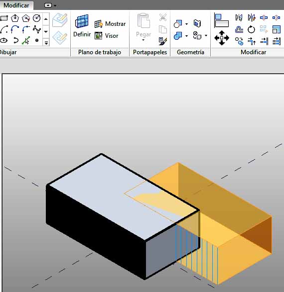 Ejemplo de corte de una Forma sólida por medio de otra Forma sólida.