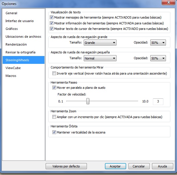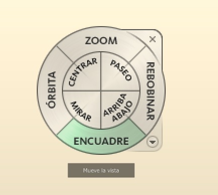 SteeringWheels llamado familiarmente «Ruedas» es una opción existente en la Barra de navegación, y contiene varias herramientas para navegar y orientar el modelo.