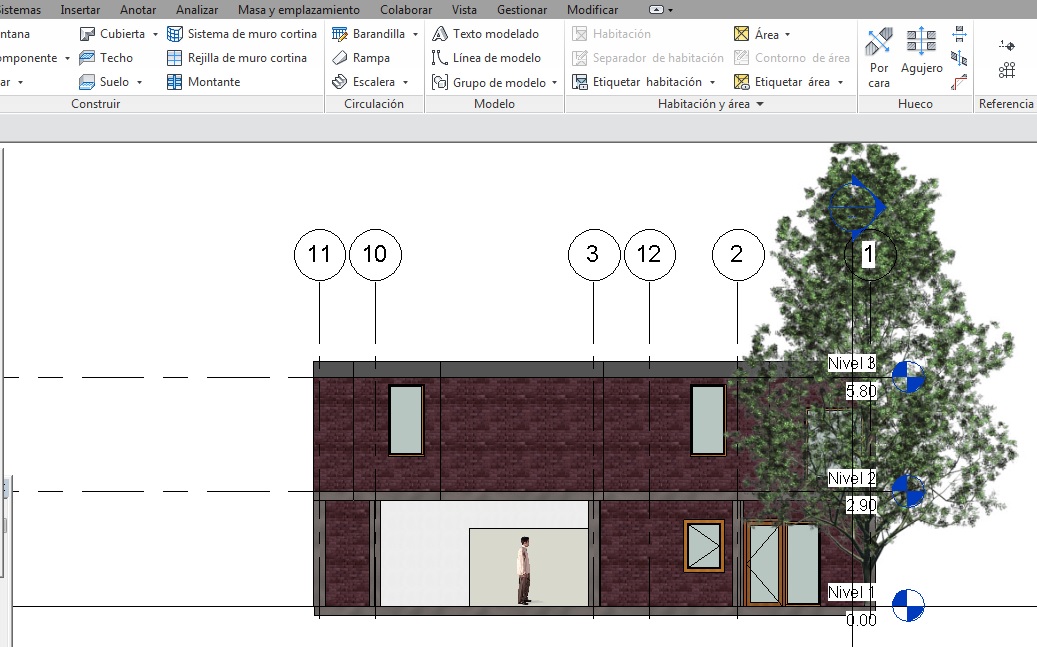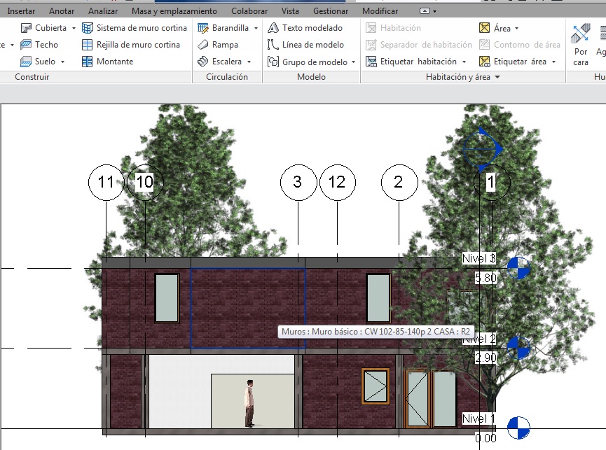 La opción Sin delimitación significa que la Vista mostrará toda la información que se encuentre detrás del Plano delimitador. Como por ejemplo en la siguiente Vista de alzado: