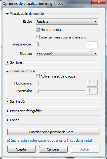 Revit permite transformar una Vista en Croquis. Para realizar este cambio en una Vista hay que ir a Opciones de visualización de gráficos, y seleccionar la opción de Líneas de croquis y elegir los valores que se requieran para la opciones de Fluctuación (más o menos curva la línea) y Extensión (más o menos longitud de la línea).
