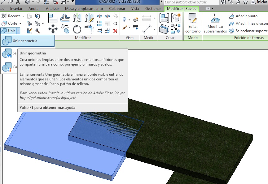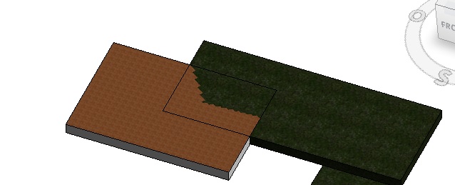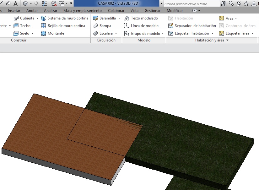 A veces las superficies de un Modelo al Orbitar o realizar un Zoom en una Vista, estas no se ven de forma homogénea. Como se puede observar en el ejemplo siguiente en el punto donde se solapan los dos suelos el color del área de intersección no se muestra con un color homogéneo, una vez se ha realizado una rotación en una Vista 3D.