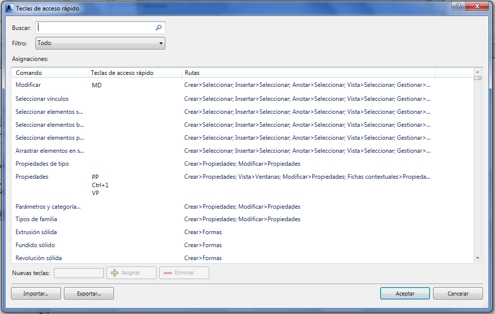 – Teclas de acceso rápido. Por medio del Cuadro de diálogo que aparece se pueden añadir,o eliminar teclas de acceso rápido.