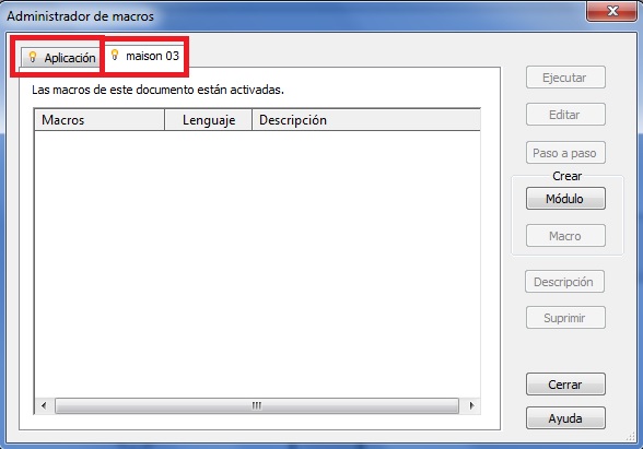 Este Administrador de macros tiene unas fichas que indican el nivel de una Macro, y son:
