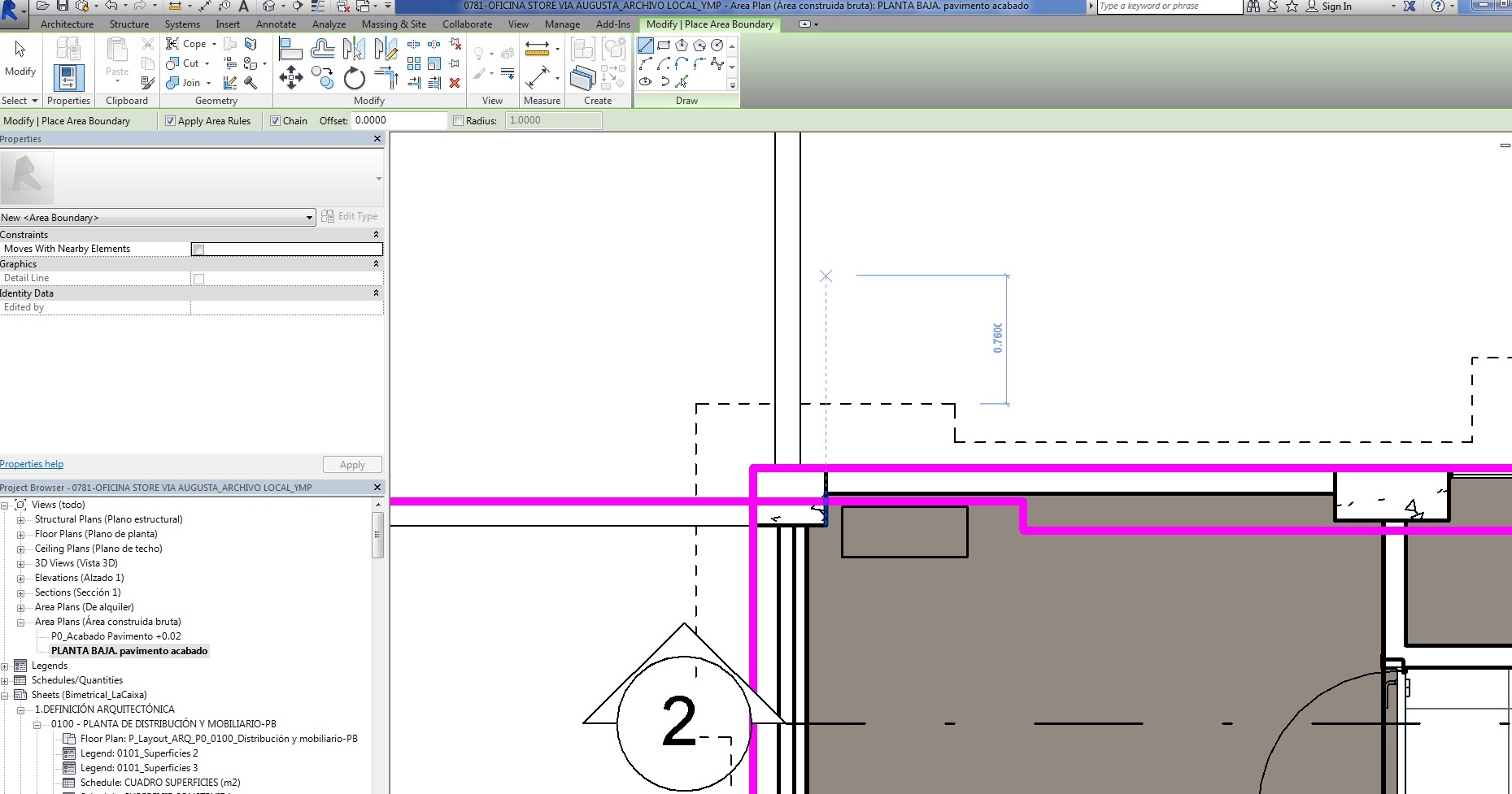 Aparece una Vista nueva en el Cuadro de navegación, y con la opción Habitación y área- Perímetro de área-Dibujar, hay que realizar el perímetro de la superficie construida de la planta.