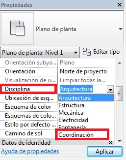 En caso de que cuando se haya vinculado el archivo de Revit éste modelo no se vea en el Proyecto, hay que ir al Navegador de proyectos y a Disciplina – Coordinación. De esta forma el Proyecto muestras todas las Disciplinas: arquitectura, estructura, instalaciones.