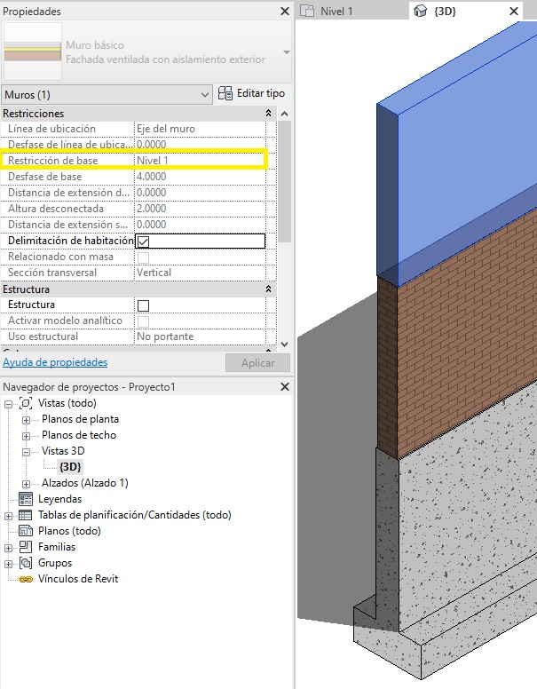 - Los submuros de un muro apilado tienen el mismo nivel de base y valor de desfase de base respecto el nivel de base que el muro apilado. Es decir, un submuro tiene un nivel donde está emplazado físicamente que será diferente del nivel de base del muro apilado, pero para Revit este submuro se basa en el nivel de base del muro apilado.
