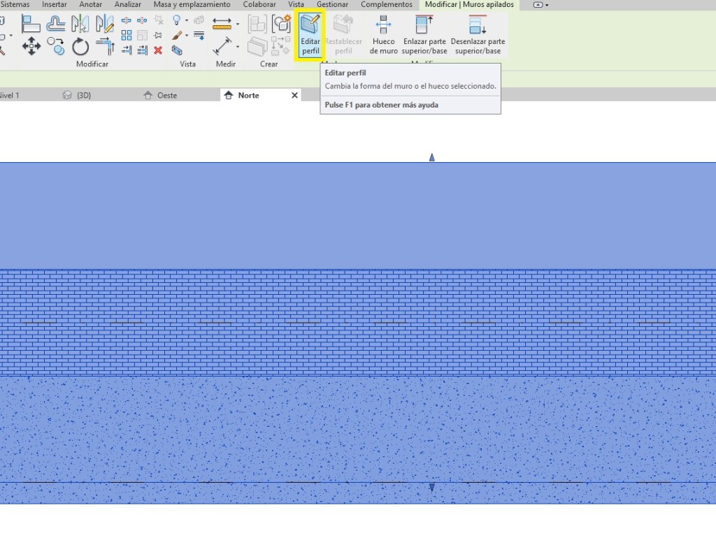 - La opción de Editar perfil en un Muro apilado es para el muro global, no para los submuros. En caso de que se quiera utilizar para cada uno de los submuros que componen el muro apilado, hay que dividir el Muro apilado de forma que cada submuro sea independiente.