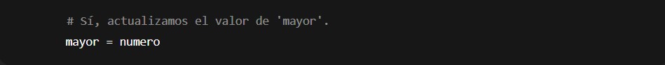 Si la condición anterior se cumple (es decir, numero es mayor que mayor), entonces actualizamos el valor de mayor con ese nuevo número.