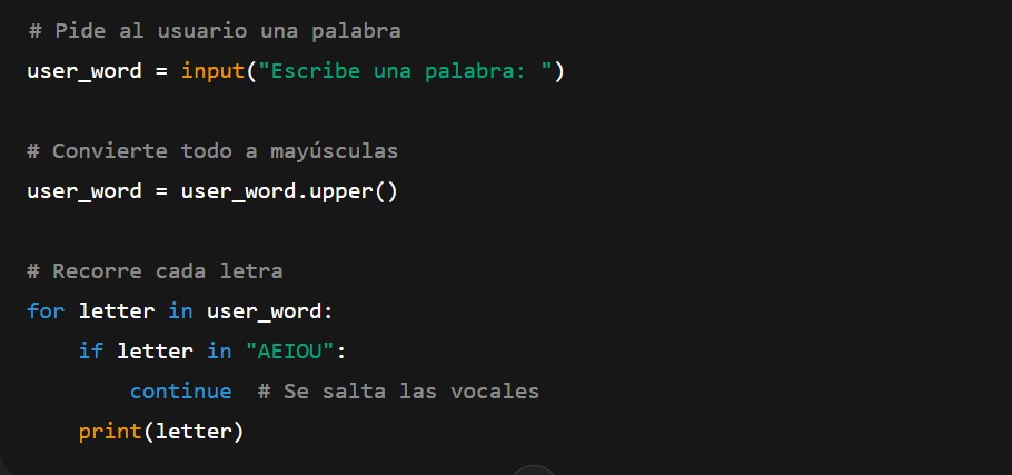 Esta línea solo se ejecuta si la letra NO es vocal, porque si lo fuera, el continue la habría saltado.