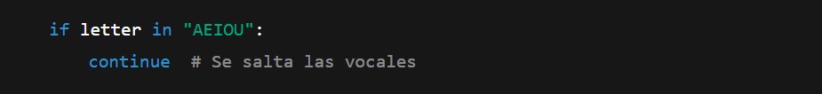 Si la letra es vocal (A, E, I, O, U), se usa continue para saltar.