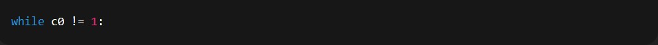 Inicia un bucle while que continuará mientras c0 sea distinto de 1. Cuando c0 llegue a 1, el bucle termina.