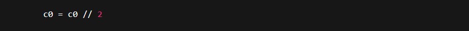//es división entera (redondea hacia abajo). Comoc0es no negativo, equivale a “dividir por 2 y quedarse con el entero”.