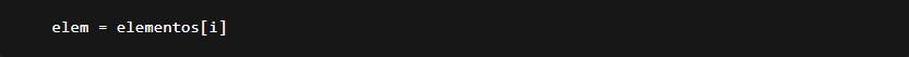 Bucle while que itera mientras i sea menor que len(elementos) (la longitud de la lista).