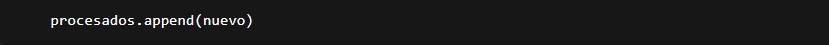 Añade el diccionario nuevo a la lista procesados. Así vamos acumulando el resultado del procesamiento.