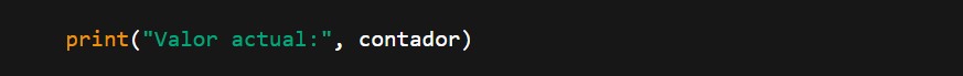 Imprime en pantalla el texto «Valor actual:» seguido del número actual de contador.