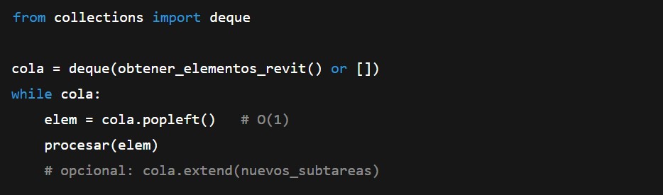 Si devolviera None o algo no iterable, el resto del código fallaría. En un flujo real conviene validar: pendientes = list(obtener_elementos_revit() or []).