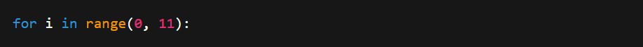 range(0, 11) genera los números del 0 al 10 (recuerda que el stop=11 no se incluye).