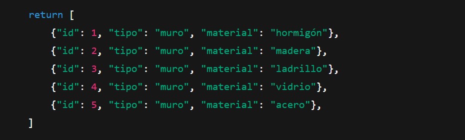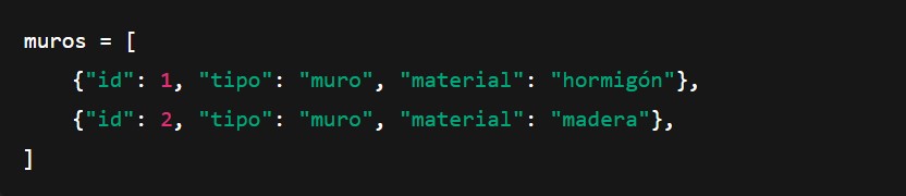 En la práctica, esa función devolvería una lista de muros (cada muro sería un diccionario u objeto con información: id, tipo, material, etc.).