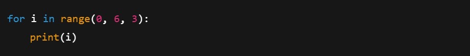 Aquí creamos un bucle for que recorre los valores generados por range(0, 6, 3).