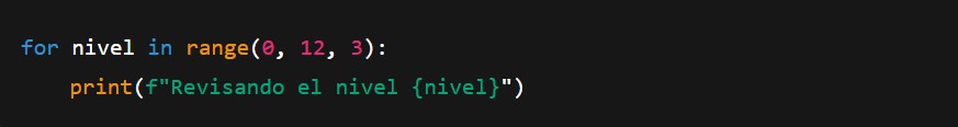 Imagina que tienes un conjunto de niveles en un edificio y quieres iterar sobre ellos de tres en tres (por ejemplo, revisar solo los niveles 0, 3, 6, …).