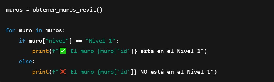 Así vemos cómo el operador == en Python nos ayuda a preguntar cosas muy concretas sobre los elementos de Revit y actuar en consecuencia.