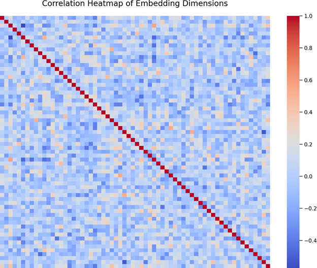 - Correlation Heatmap — Relationships Between Embedding Dimensions