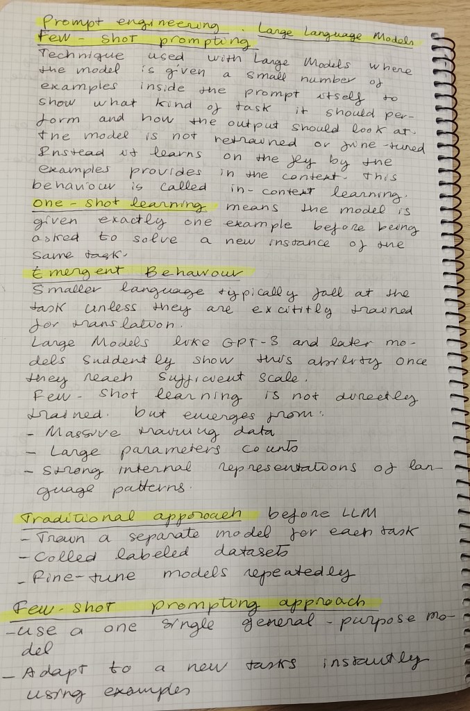 - Few-shot prompting allows large language models to learn new tasks from just a few examples.