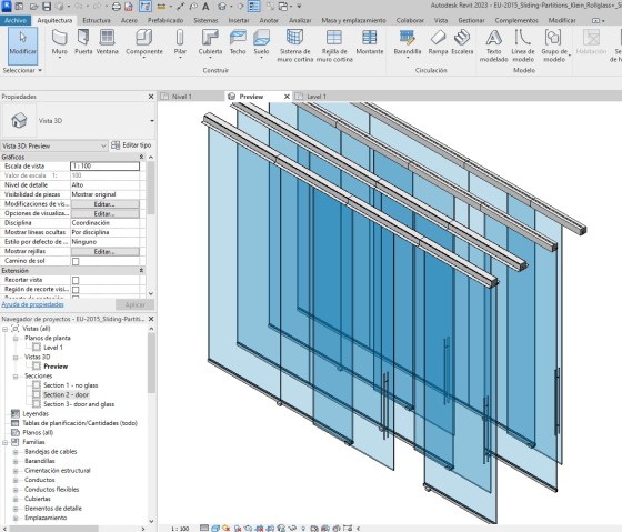 REVIT ARCHITECTURE (859) – Familias (130) Ejemplos de familias cargables (26) Puerta corredera vidrio Klein ROLLGLASS+